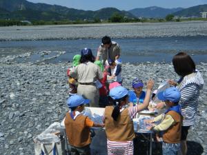 焼けるまで、石投げ。 最近はこんな事が出来る場所も 少なくなってしまったので、 良い経験になります。 |