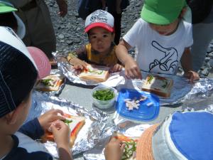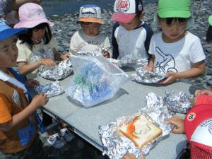 | 野外料理の練習をしました。 こちらはピザトースト |