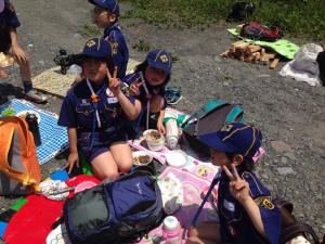 出来栄えは、コノ笑顔 とっても美味しく頂きました。 インストラクターの先生、 どうもありがとうございましあ。 大満足の集会です。 なお、サッカーも頑張ってもらいたい (団委員長 談W) |