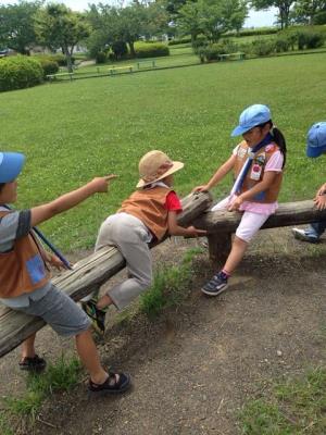 ビーバー隊はミニハイク 途中で見つけたアスレチックで おもいっきり遊びました。 |