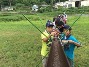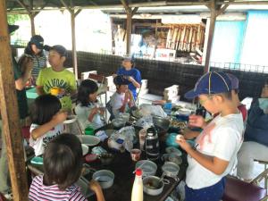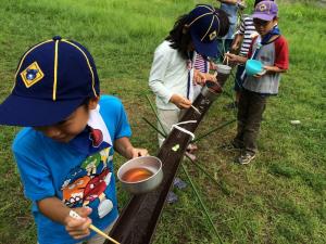 一転して涼しいプログラム 恒例の流しそうめん!! 抜群の清涼感です。 |