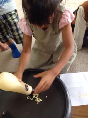 ビーバーは、薪でフライパンではなく ホットプレート。 絵を書いたり字を書いたりして 想像力を働かせています。 |