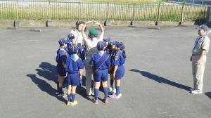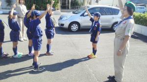 | やくそくの唱和 リードするスカウトは、緊張してますが、 これが良い経験になります。 |