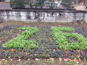 先月ボーイ隊が植えた花壇 ダイブ成長し、素晴らしいデザイン?が 表現されています。 このデザインセンス、神業!! |