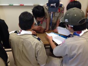 全員無事に戻って、報告書の作成。 班長、お疲れ様でした。 グリンバーのみなさん、有難う 後輩のスカウトたちを楽しませてくれて。 さすがに私が信頼する少年幹部です。 |