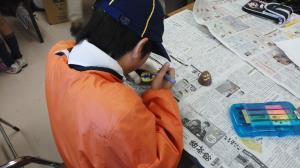 | いろとりどりのインクを着けて オリジナルのハガキ、完成 みんな器用に集中して 作業してました |