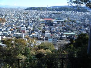 市内が一望できるポイントです。 地図上で予想したランドマークとの 方位角を確認して目的の三角点と 確認出来ました。 |