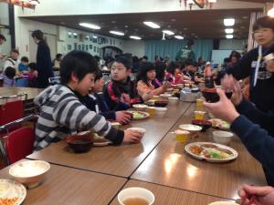 | 夕食の様子 | 前回より改善されていて温かいご飯 | さらに夜食のカップめん |